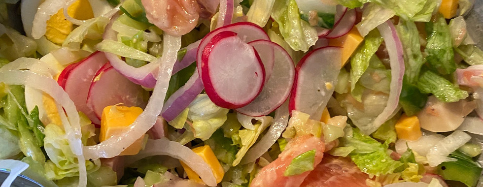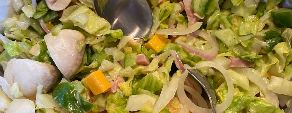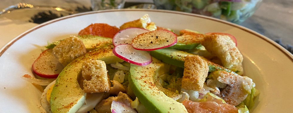 When we first considered making Red Beach’s Green Salad, we planned to present it as an elegant – yet playful – mid century modern party dish. And then, we had a discussion with the architect’s daughter and learned the history of this recipe. During the weekdays, when his family was at their summer home on Old-Mission Peninsula, this was Red’s reliable workday meal. Rather being elegantly served, he would make the salad in a large mixing bowl - which also served as the serving bowl. The presentation was much less elegant than the method suggested in his wife Jean Beach’s cookbook Savoring Saginaw.