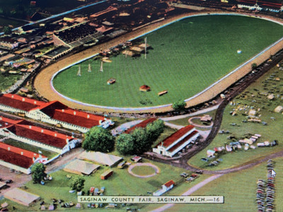 In August of the following year, the Saginaw County Agricultural Society was formed and opened their first fair on October 6, 1914. The site for it was located at the corner of East Genesee and Webber and was rented from the Saginaw Driving Club. The location was considered far out in the county. The only permanent structure on the property was a wooden grandstand serving the racetrack. Horse racing was an important part of the fair and the track was put to good use. Exhibits were housed in tents and unpaved roads became a mire of mud.