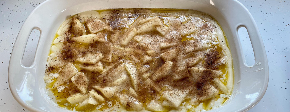 Place the butter in a 9 by 13 inch baking dish, then place the dish in the over to melt the butter. Remove from the oven as soon as the butter is melted. Pour the batter over the melted butter. Spoon the pears over the batter. The pears should not extend more than 1 inch from the top of the dish.