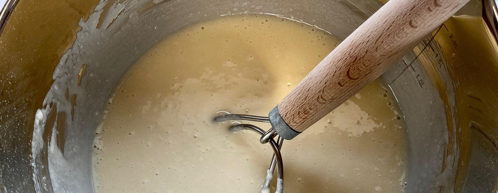 In another bowl, combine the milk, the remaining 1 cup sugar, the flour, baking powder, and salt. Beat until the batter is smooth; the mixture will be thin.