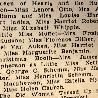 In November 1909, Hazel Van Auken Kollig participated in the Mother Goose Market held at St. John’s Episcopal Church. She worked in the Little Miss Muffet Booth. Although we have not been able to identify her in images of the fair, we can imagine the costume she wore.