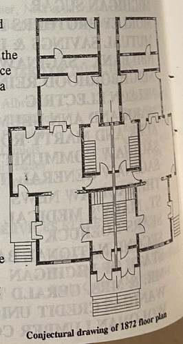 Completed, about 1869, the structure contained two elegant homes – the units were mirror images of each other. It was designed by J.B. Dibble, the architect who designed the Taylor House – later known as the Fordney Hotel.