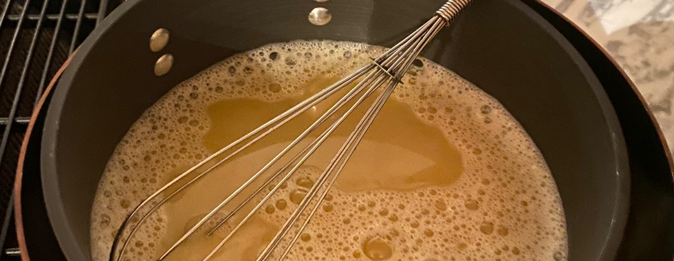 With exception of cream, whisk these ingredients together and heat in a double boiler.