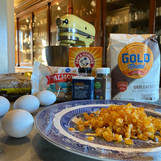Sift together 3 ½ cups of flour, cloves, and allspice. Beat eggs and then add brown sugar. Add citron and almonds. Dissolve soda in warm water and add to mixture. Stir in flour and add additional flour if needed. (I used 4 cups.) Cover and store in refrigerator overnight.