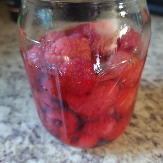 Place red raspberries in a stone jar, cover them with good cider vinegar, let stand for 4 days, then press out all the juice. To 1 pint of juice, add 1 pint of sugar. Boil 15 minutes and bottle while hot. Drop 1-2 raisins in each bottle. Serve with crushed ice and water or soda.