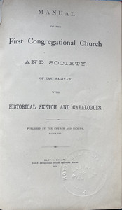 Manual of the First Congregational Church and Society of East Saginaw With Historical Sketch and Catalogue, East Saginaw, Daily Enterprise Steam Printing House, 1874.