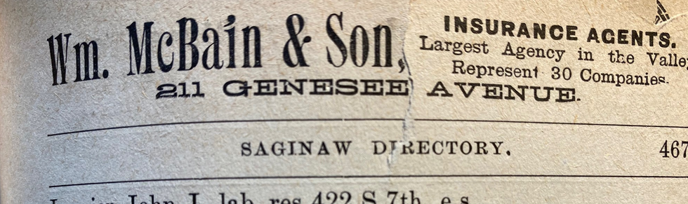 “McBain – Word has just arrived by friends in Saginaw of Mrs. William McBain, who passed away at the home of her daughter, Mrs. Charles Charlson, New Westminster, British Columbia. Mrs. McBain was a well known former resident of this city, having left here about 16 years ago. She was 87 years of age and lived in Saginaw for many years, being one of the pioneers of this section. Her husband died in Saginaw and is buried in Forest Lawn cemetery. She leaves four daughters and one son, none of whom now reside here. The funeral took place in New Westminster, where the interment took place” (The Saginaw Courier Herald, August 8, 1911).