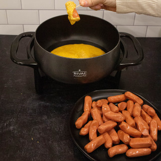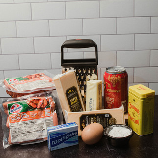 Notes: When I interpreted this recipe, the grocery store was fairly picked over for beers and the roads were icy so I opted for a Belgian style Amber Ale that was made in Michigan. I also used cocktail sausages in place of smoked sausage for the same reason. When melting the cheese, it clumped into a ball but transformed into a sauce consistency as soon as the beer and egg yolk were added to the pot. I also used a fondue pot rather than a chafing dish.