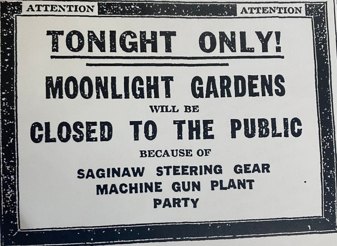 Within a few months of opening an advertisement proclaimed: “The Moonlight Gardens is now cooled by Air Way - with a complete change of air every six minutes. The coolest spot in Saginaw County. The last word in floor shows.”
