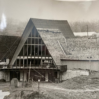 constructed by John and Joan Bintz in their--once flat--Thomas Township apple orchard. Housed in an A-frame building designed by the Saginaw firm of Spence, Smith and Forsythe Architects, the focal point of the dining room was a dramatic freestanding fireplace with a stainless-steel hood that soared 50 feet to the roofline.
