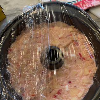 Although actual jello molds are available online, they are not readily available in many retail stores. After being reminded that the golden age of molded salads may have passed, we opted for using a Bundt pan.