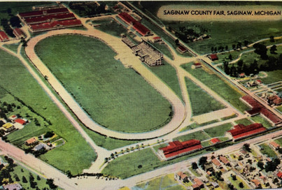In August of the following year, the Saginaw County Agricultural Society was formed and opened their first fair on October 6, 1914. The site for it was located at the corner of East Genesee and Webber and was rented from the Saginaw Driving Club. The location was considered far out in the county. The only permanent structure on the property was a wooden grandstand serving the racetrack. Horse racing was an important part of the fair and the track was put to good use. Exhibits were housed in tents and unpaved roads became a mire of mud.