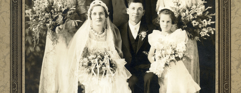 Wedding Photo of Henry and Lorina Schwan and their Wedding Party. August 9, 1936. (image 1)