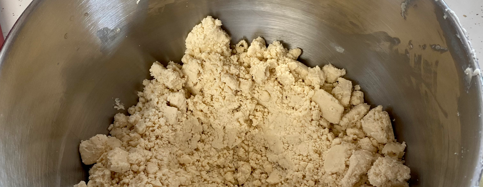 Combine butter and shortening in a mixing bowl thoroughly (using paddle attachment if stand mixer). Blend in salt. Add half of flour until it makes pea-sized balls. Scrape down bowl and paddle really well. Add second half of flour.