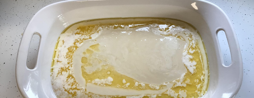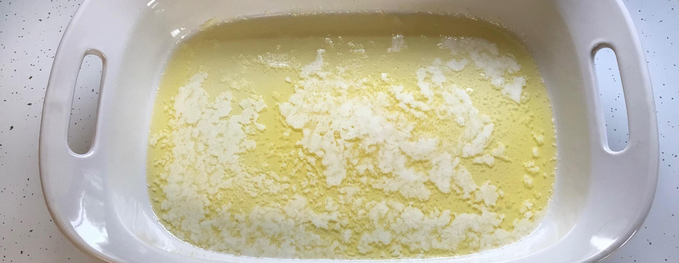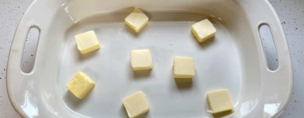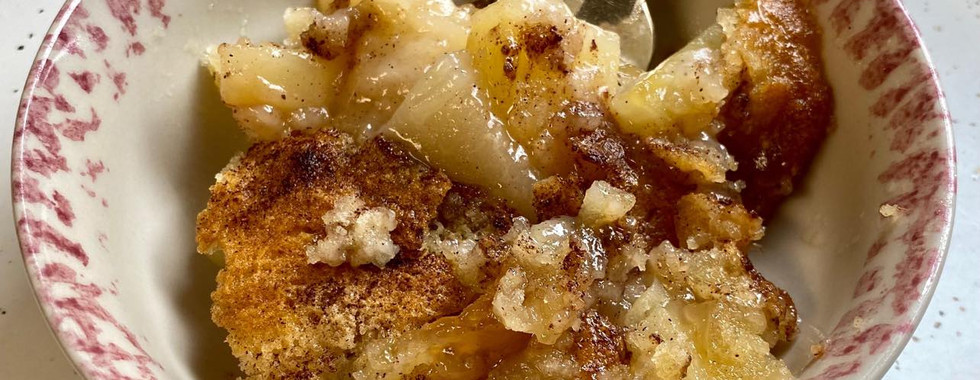 Place the butter in a 9 by 13 inch baking dish, then place the dish in the over to melt the butter. Remove from the oven as soon as the butter is melted. Pour the batter over the melted butter. Spoon the pears over the batter. The pears should not extend more than 1 inch from the top of the dish.