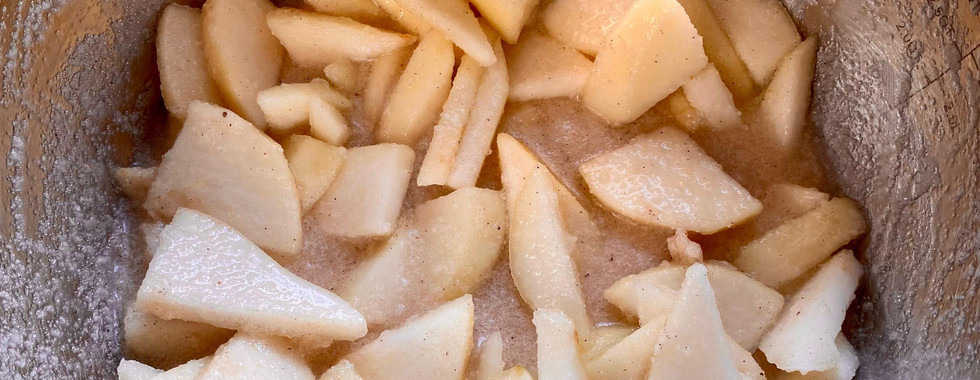 In another bowl, dissolve the cornstarch in the water. Stir the cornstarch mixture into the pear mixture.