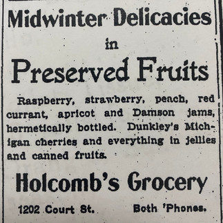 The store was started by George Holcomb in about 1893. Advertising suggests he carried a general line of groceries. After being elected to the City Council, he became involved in local government and in 1914 turned the store over to his sons, William and Harry Holcomb. Renaming the business, Holcomb Brothers, they operated at the Court Street location until the later part of the 1920s. As time progressed, they changed the focus of the business. Purchasing property on Bay Road in Kochville Township, they established a produce farm, Holcomb Gardens. By the mid-twentieth century, the farm was described as one of the largest vegetable growers in Saginaw County. Eventually, their operation included a retail store on their farm.