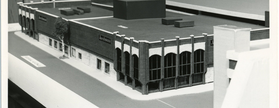 The images are of the architect's model for the expansion of the store and construction of the superblock, along with advertising.