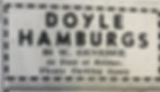 The first advertisement we have found for Dale D. Doyle’s post-Kewpee Hotel restaurant was published on August 7, 1939. Simple and direct, it states “Doyle Hamburgs, 80 W. Genesee at foot of Bridge, Plenty of Parking Space.” In the 1940 city directory, the business is simply listed as Dale Doyle, Restaurant.