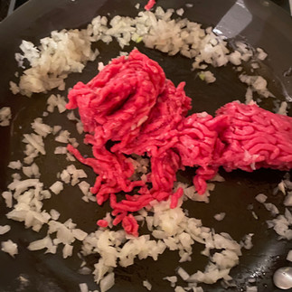 Process: Preheat oiled pan. Lightly sauté onions, do not brown. Add ground beef and salt and pepper. Stir constantly, being careful to break all clumps of meat. Brown but do not overcook. Drain off any grease – leaving only flavor and protein. Divide into four to six portions and serve promptly. Ketchup and mustard are to be added by the diner.