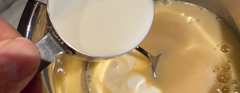 With exception of cream, whisk these ingredients together and heat in a double boiler.