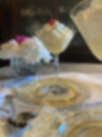 Pineapple Fluff: Whip ½ pt. cream, Dice 1 can and ¼ pound marshmallows, add part of whipped cream and stir thru it. Set in a cold place. When ready to serve, fold in remainder of whipped cream, place in individual serving dishes and garnish with a cherry. Oranges and dates may be added to the pineapple if desired.
