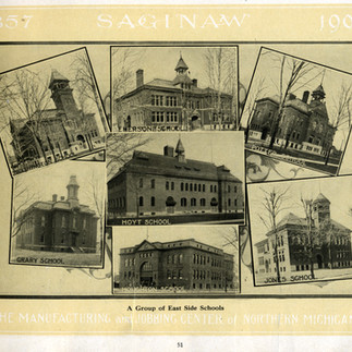 On June 28, 1889, Governor Cyrus Luce signed Local Act 455 consolidating East Saginaw and Saginaw City, and in March 1890, the two communities became one city. The legislation carefully outlined details of the merger that included the construction of a new city hall located halfway between the two business districts and construction of additional bridges to join the communities. However, items remained to be negotiated over time. Perhaps largest item was the consolidation of the school boards. A 1907 publication stated it simply: “Saginaw has two public school systems, one for each side of the river.”