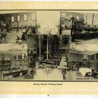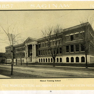 Competition was not limited to students and athletic events. Saginaw’s philanthropic activities reflected and reinforced the division. Heavenrich Bros. & Co. established a scholarship for students of Saginaw High School in 1891. Two years later lumberman Arthur Hill established scholarships for the former Saginaw City High School - it was renamed in his honor. In 1905, the Burt Manual Training School was dedicated. This addition to the Saginaw High campus, was made possible by a $235,000 gift from Wellington R. Burt. Six years later, with a bequest from Arthur Hill, construction started on Arthur Hill Trade School to serve the west side schools.