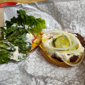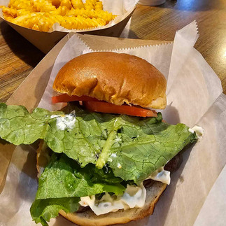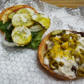 The difference between the Deluxe and the Olive Burger is a slice of tomato. In addition, each came with lettuce.