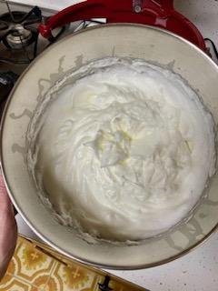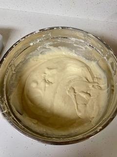 Fold in your whipped eggs. This will loosen the dough into a batter.