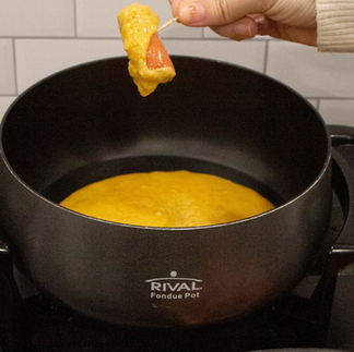 Notes: When I interpreted this recipe, the grocery store was fairly picked over for beers and the roads were icy so I opted for a Belgian style Amber Ale that was made in Michigan. I also used cocktail sausages in place of smoked sausage for the same reason. When melting the cheese, it clumped into a ball but transformed into a sauce consistency as soon as the beer and egg yolk were added to the pot. I also used a fondue pot rather than a chafing dish.